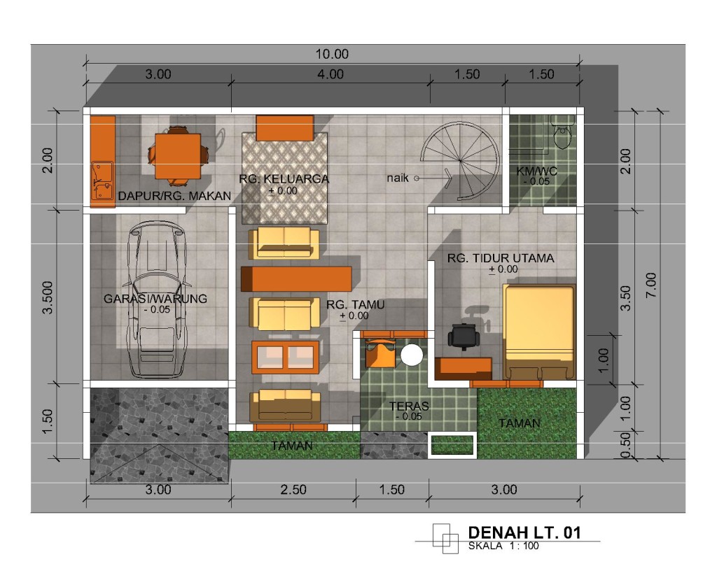 61 Gambar 3D Denah - Sketsa Rumah Minimalis Eksklusif